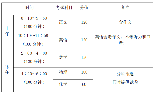 经审核确定的学科特长生招生对象,3月30日(暂定)在十堰一中进行为期一天的选拔测试。学科特长生招生考试命题原则依据义务教育课程标准和现行教材,突出选拔性,但不超出课程标准,不出偏题怪题。试题充分体现新课程理念,重点考查学生的创新精神与实践能力,同时增加综合性、开放性、应用性、探究性试题。测试科目、分值、时长、时间安排见下表: